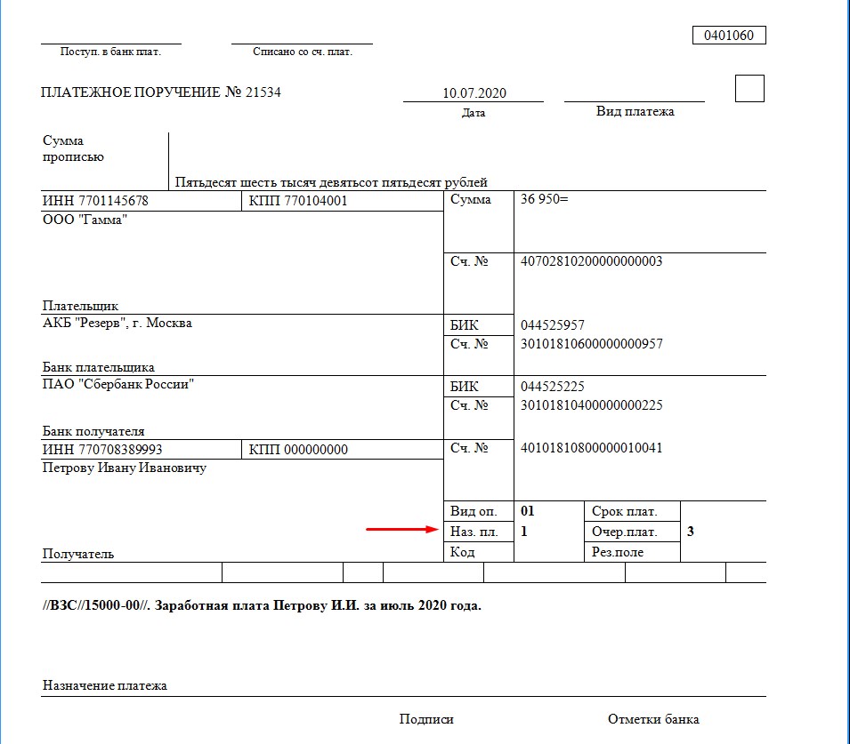 Бланк по форме по ОКУД 0401060 утвержден Центробанком (Положение ЦБ РФ №383-П от 19.06.2012). В приказе Минфина РФ №107н от 12.11.2013 определен порядок заполнения платежного поручения, который действует и в 2020 году.