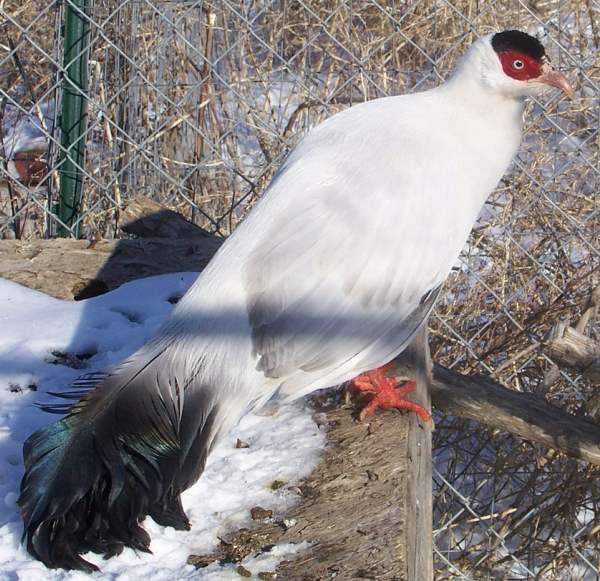 Настоящее украшение этого роскошного вида – длинный хвост, достигающий у самцов метровой длины. Хвостовое оперение белое с поперечными черными полосами. Длина самца до 150 см, самок – 70 см, вес варьируется от 0,8 до 1,4 кг.