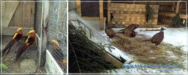 Поить фазанов нужно исключительно холодной водой. Пищу и воду ставят под навесом.