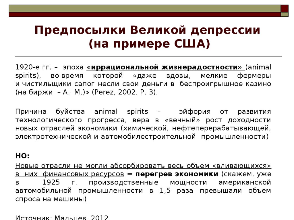 Великая Депрессия (great depression) – продолжительный экономический кризис в мировой экономике, начавшийся в США в 1929 году, а затем и в других странах мира.
