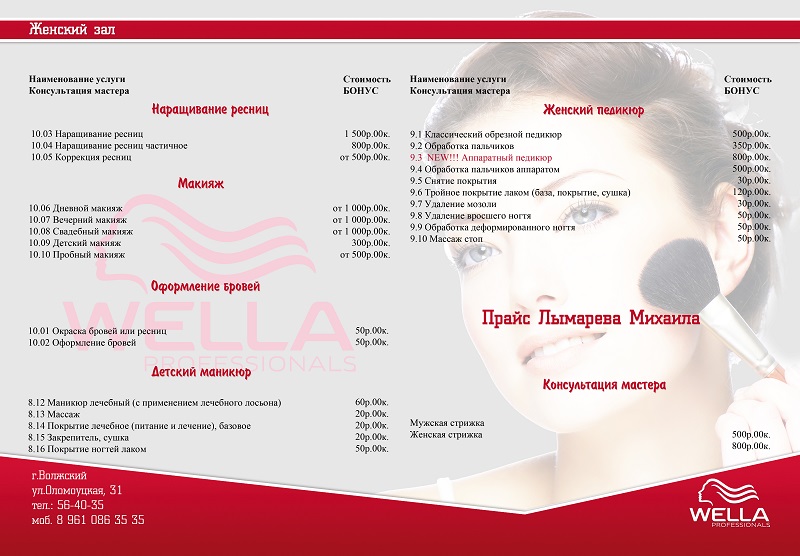 прайс мобильный салон красоты шпилька выезд на дом услуги