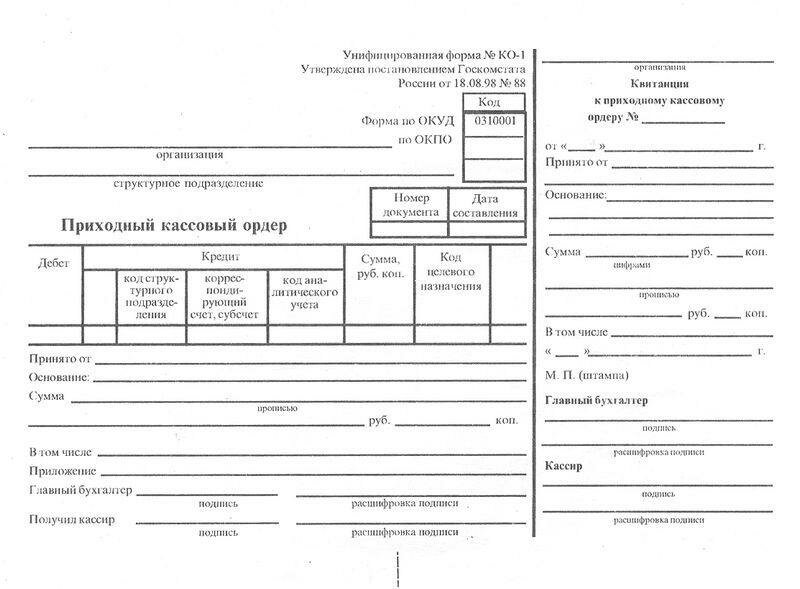 Приходный кассовый ордер — Энциклопедия по экономике