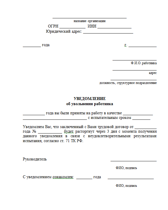 Форма уведомления об увольнении в связи с ликвидацией организации