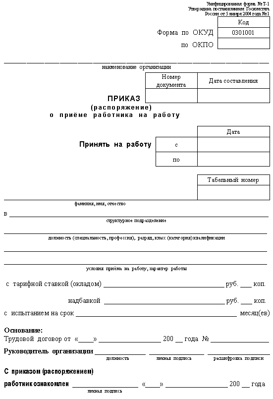 - издается приказ о приеме на работу