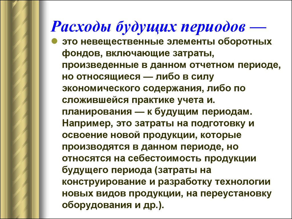 Расходы будущих периодов – это затраты, которые уже понесены, но еще не израсходованы.