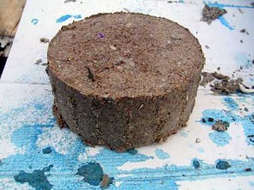 - Полученную таким способом смесь помещают в самодельную прессовочную форму, и усилием рук сжимают как можно сильней.
