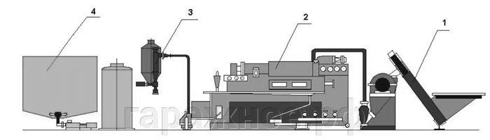 , для подачи сырьевой смеси в бункер над экструдером