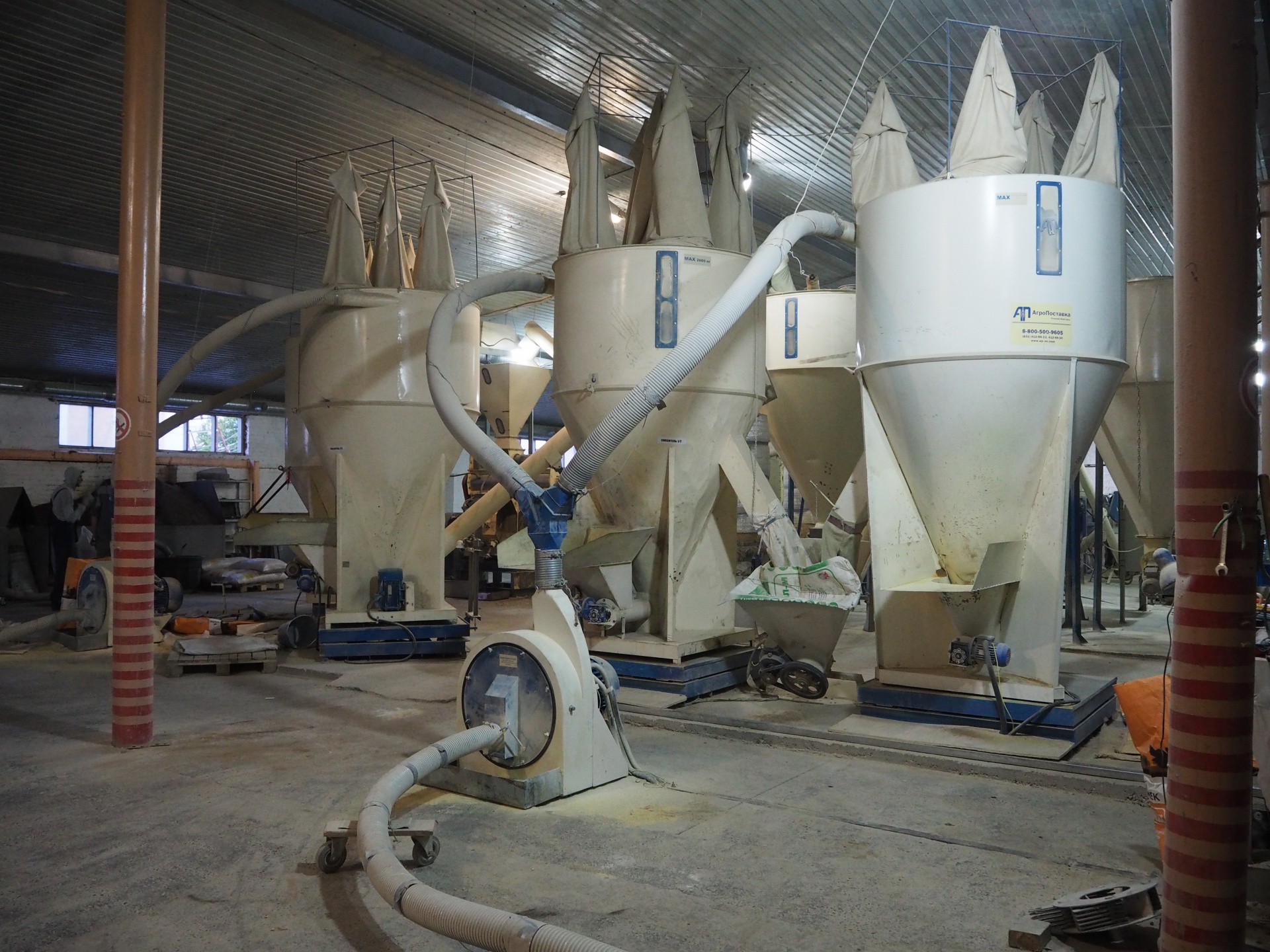 Весь процесс производства кормовой муки полностью автоматизирован и рабочий персонал необходим только для контроля работы оборудования.
