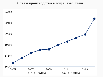 тонн. Все тот же Китай был крупнейшим потребителем (около 12,5 млн тонн — почти 50% мирового потребления!).