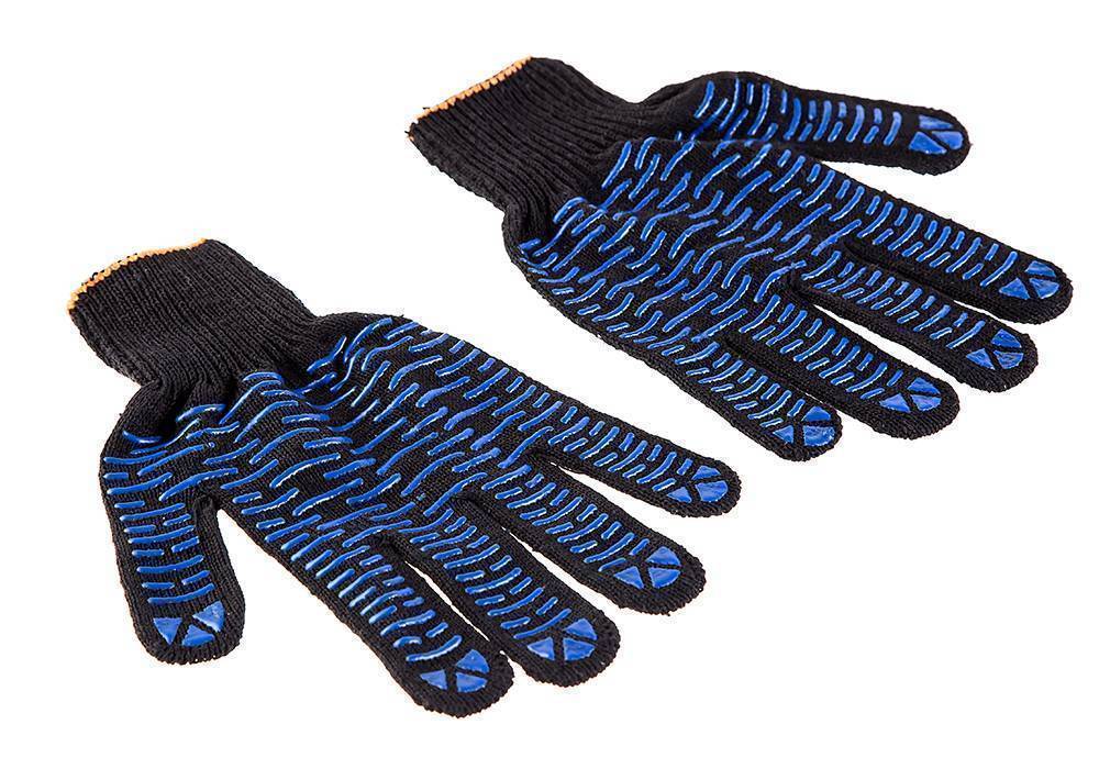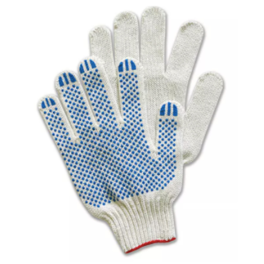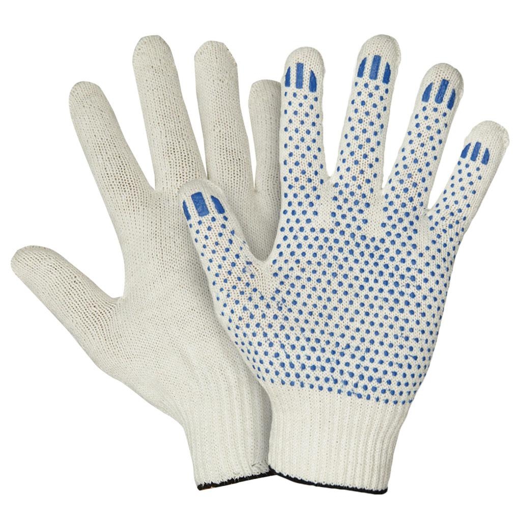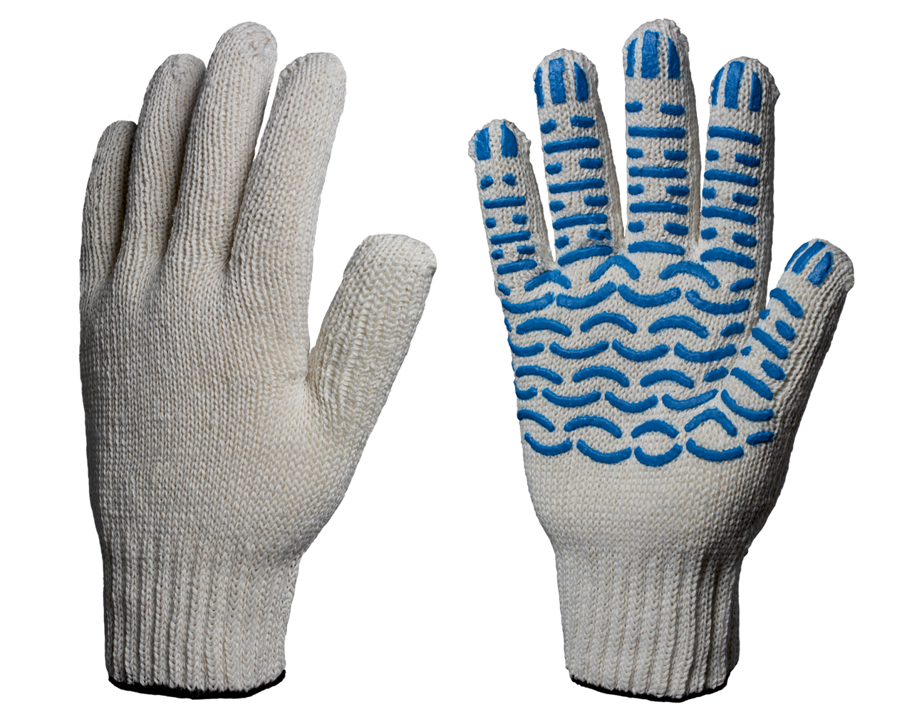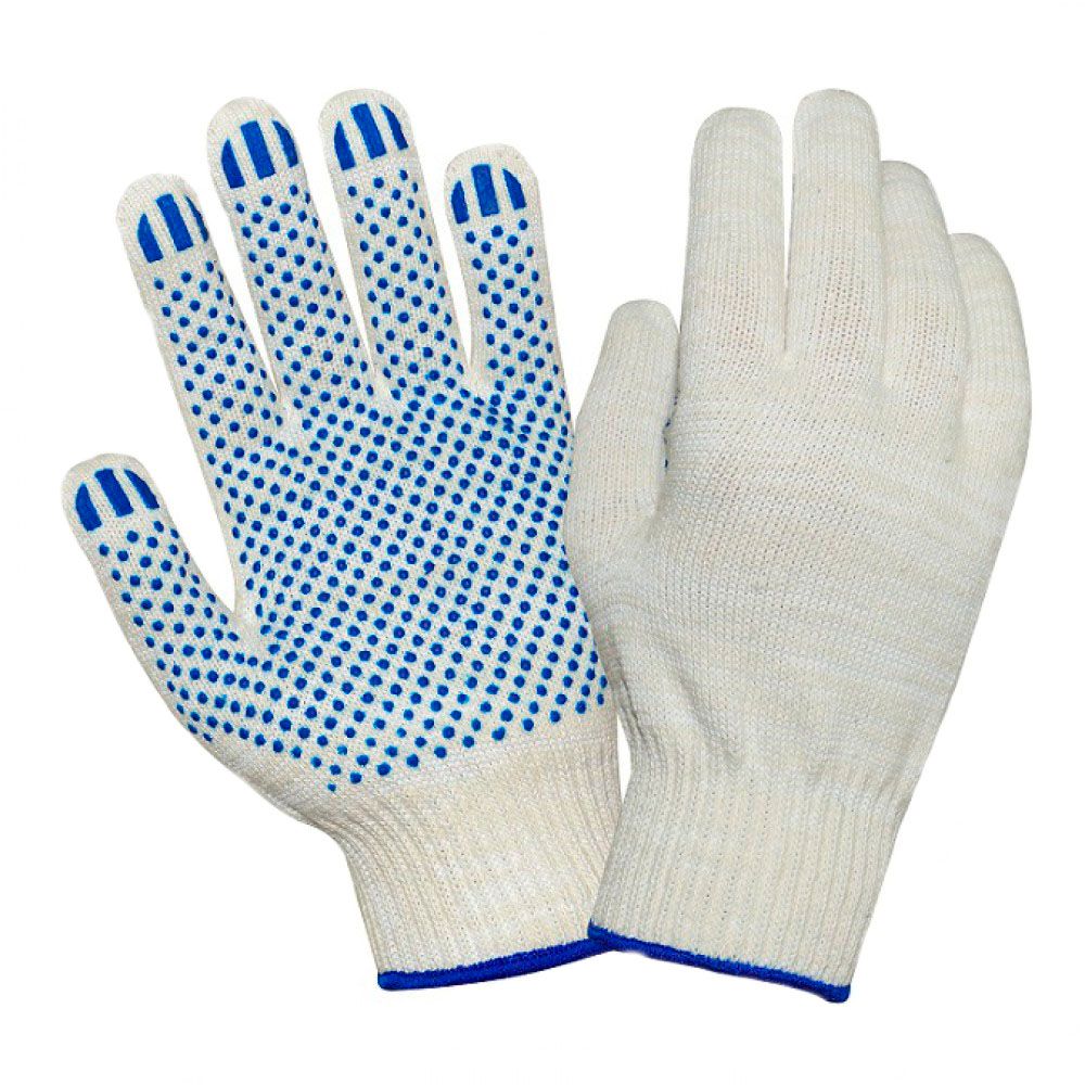 Трикотажные перчатки х/б, за счет полиэстера, обладают большей эластичностью. На ладонную часть рабочей стороны наносят точечное ПВХ покрытие, для обеспечения надежного захвата во время ношения груза. Точечное ПВХ покрытие делает перчатки х/б оптимальным решением для работы со скользкими и гладкими поверхностями, улучшает сцепные свойства. Манжеты снабжаются резинкой, отчего носка перчаток становит более комфортной. Такие перчатки идеально подходят для строительного сектора и транспортной промышленности. Перчатки х/б отличаются комфортом эксплуатации, не стесняют пальцы, предотвращают потение рук благодаря свободному воздухообмену.