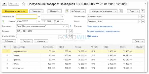 Поступление товаров и услуг 1С:Бухгалтерия 3.0