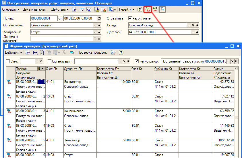 — Поступление товаров и услуг в меню «Покупка» вид хозяйственной операции: «Покупка, комиссия»