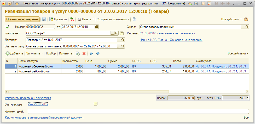 Кредит 68.02 «Налог на добавленную стоимость«