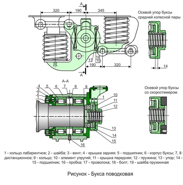 это обеспечивает требуемую жесткость буксового узла в продольном и поперечном горизонтальном направлениях.