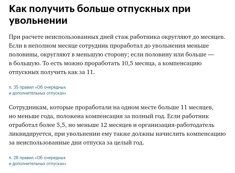 Компенсация отпуска при увольнении