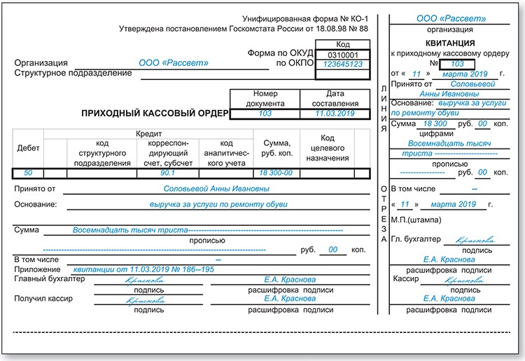 Также все ордера должны быть отражены в регистрационном журнале формы КО-3. Бланки перечисленных выше документов являются унифицированными, они были утверждены постановлением Госкомстата от 18.08.1998 № 88.