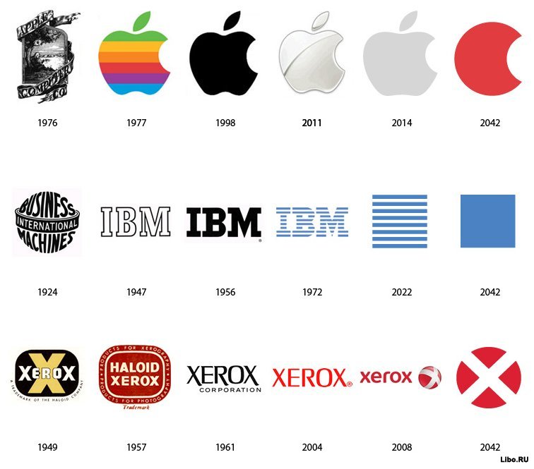 Форма логотипов вместе с цветом тоже может меняться, но незначительно — с сохранением узнаваемых очертаний./