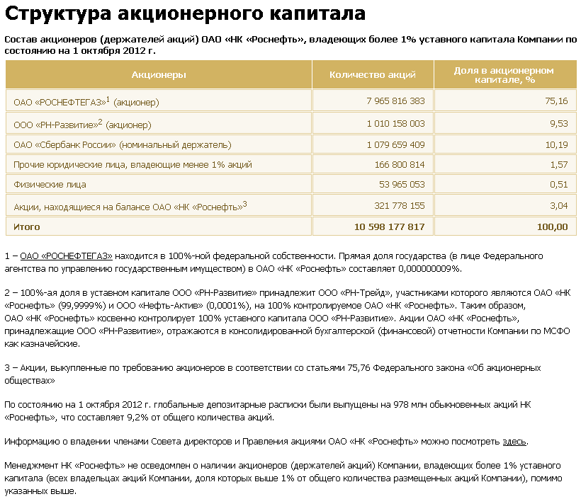 На официальном сайте Компании: https://www.rosneft.ru/Investors/structure/share_capital/ Структура акционерного капитала на 31 декабря 2020 г., %