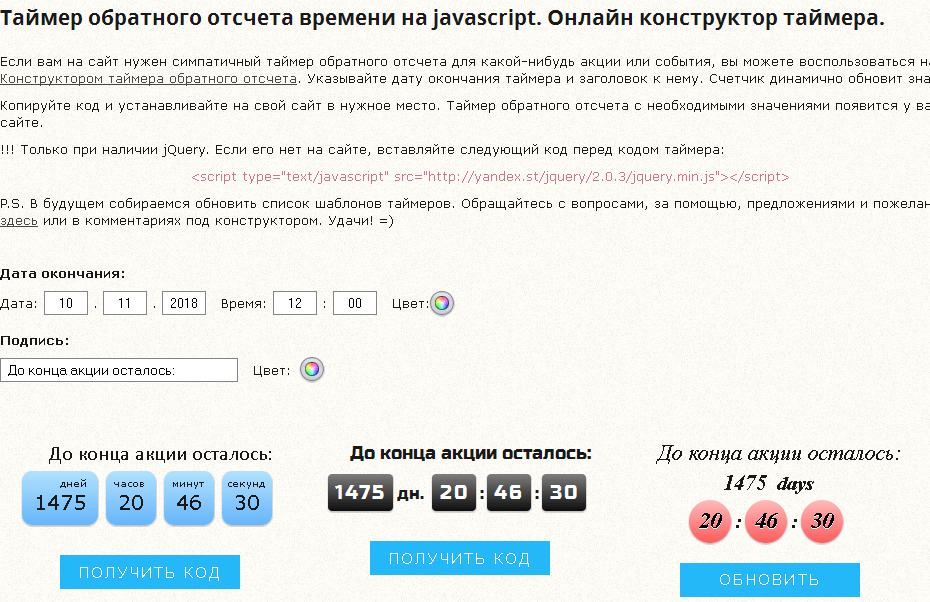 Создайте свой первый Таймер Обратного Отсчета для сайта бесплатно.