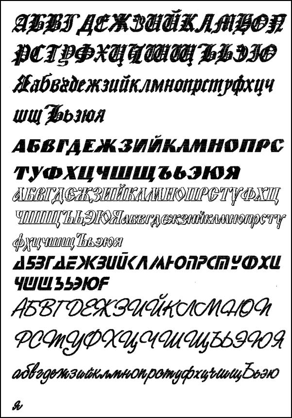 ванных шрифтов, переработки и переложения на основу русского алфавита совре¬