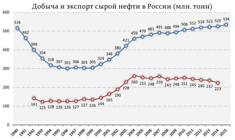 История потребления и добычи нефтиСм. ТакжеИсточникиГодовая добыча нефти в России упала впервые за 12 лет Добыча нефти в России снизилась в прошлом году впервые с 2008 года и достигла самого низкого уровня с тех пор. В тоннах добыча нефти и газового конденсата упала до 512,68 млн в 2020 году с постсоветского рекордного уровня в 560,2 млн, или 11,25 млн баррелей в сутки в 2019 году. Резкое снижение почти соответствовало ожиданиям. Показатель в 512,68 миллиона тонн на 2020 год был самым низким с 511,43 миллиона тонн в 2011 году и первым снижением в годовом исчислении с 2008 года на фоне глобального финансового кризиса и падения цен на нефть.Россия согласилась сократить добычу нефти в апреле прошлого года более чем на 2 миллиона баррелей в день, что является беспрецедентным добровольным сокращением, наряду с другими ведущими производителями нефти и Организацией стран-экспортеров нефти (ОПЕК). Этот шаг был разработан, чтобы поддержать рынок нефти, страдающий от последствий пандемии COVID-19. После апрельского соглашения, рекордного по сокращению мировых поставок, группа, известная как ОПЕК +, постепенно сокращала сокращения и, как ожидается, в январе выпустит на рынок дополнительно 500 000 баррелей в сутки. ОПЕК + проведет свой следующий саммит в понедельник, 4 января. Ожидается, что с Нового года Россия увеличит добычу нефти на 125 000 баррелей в сутки. Заместитель премьер-министра России Александр Новак, отвечающий за связи Москвы с ОПЕК +, заявил, что Россия поддержит постепенное увеличение добычи группы еще на 500 000 баррелей в сутки, начиная с февраля. Дарья Козлова, аналитик VYGON Consulting, московского аналитического центра, консультирующего правительство, сказала, что рынок сейчас в лучшей форме, чем в марте или апреле, когда спрос на нефть резко снизился в разгар первой волны пандемия. «Вакцинация (против COVID-19) началась во многих странах. Поэтому мы, вероятно, увидим тактическое увеличение еще на 500 000 баррелей в день (согласовано) в январе. Дальнейшие действия будут зависеть от рыночной ситуации». Также читайте: Пассажиры, прибывающие из Великобритании в период с 8 по 30 января, будут проверены на коронавирус по прибытии Также прочтите: Praj Industries кладет 226,90 рупий за заказ от Indian Oil Corporation ОБНОВЛЕНИЕ 1-Российская нефть, выброс конденсата резко возрастает до рекордный уровень в 2019 году* Добыча нефти в России достигла рекордного уровня 11.25 млн баррелей в сутки в 2019 г. * Россия восстановила добычу, преодолев кризис грязной нефти * Добыча нефти в России в 2020 г. составит 555-565 млн т (прогнозы, дополнительные детали) МОСКВА, 2 января (Рейтер) Добыча газового конденсата C-RU-OUT достигла рекордного уровня 11,25 млн баррелей в сутки (баррелей в сутки) в 2019 году, побив предыдущий рекорд в 11,16 млн баррелей в сутки, установленный годом ранее, показали данные Министерства энергетики в четверг. Цифры показывают, что Россия продолжает наращивать добычу нефти и газового конденсата, несмотря на влияние запятнанного нефтяного кризиса в начале года, который ограничил добычу, а также добровольное сокращение добычи в рамках глобальной сделки для поддержания цен. Министерство не разделяло цифры по добыче сырой нефти и газового конденсата, которые были исключены из квот на сокращение добычи в рамках его сделки с Организацией стран-экспортеров нефти (ОПЕК). Добыча нефти в России росла в течение последнего де
