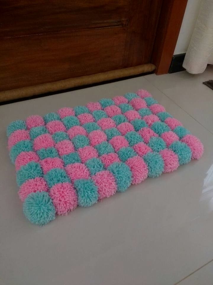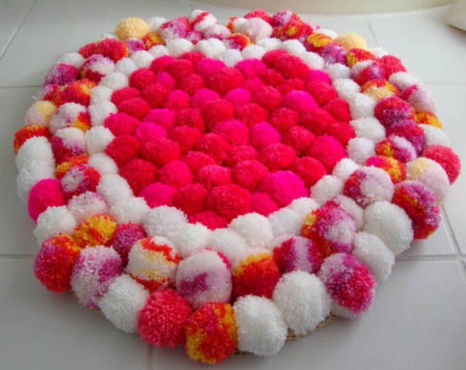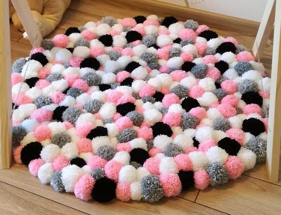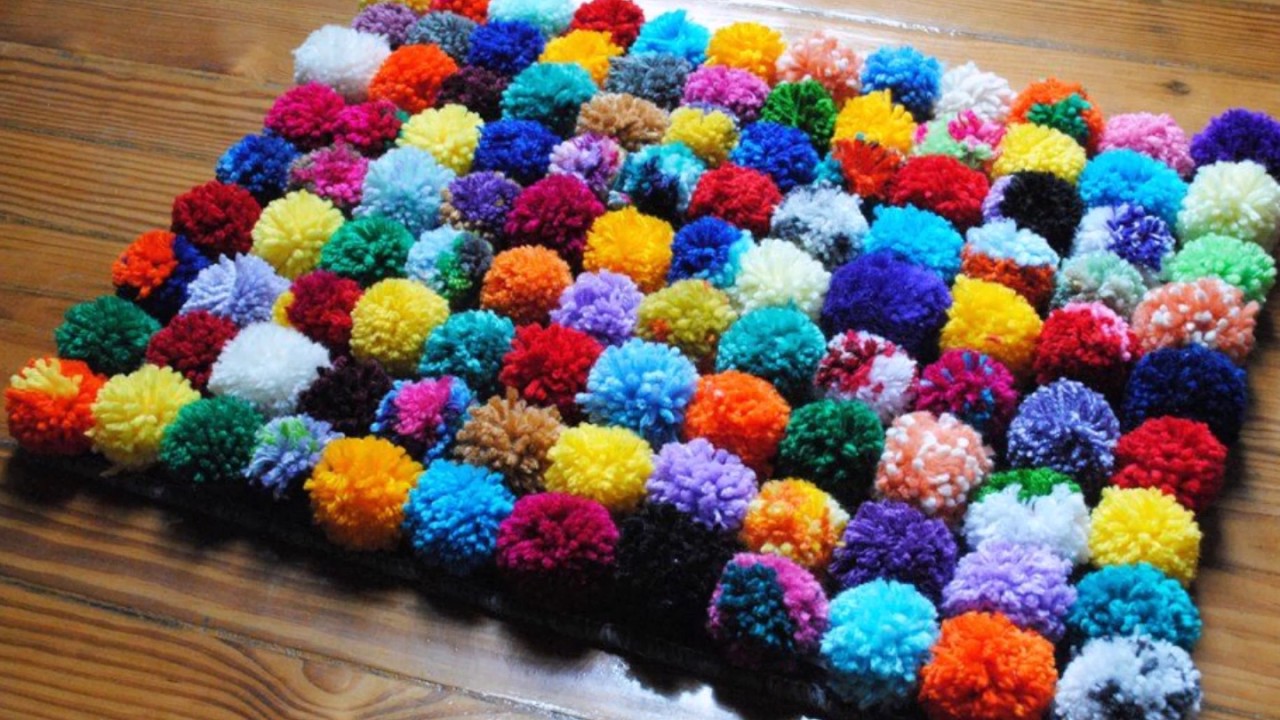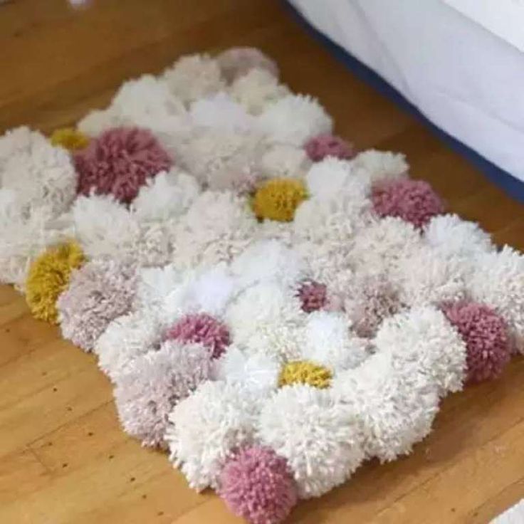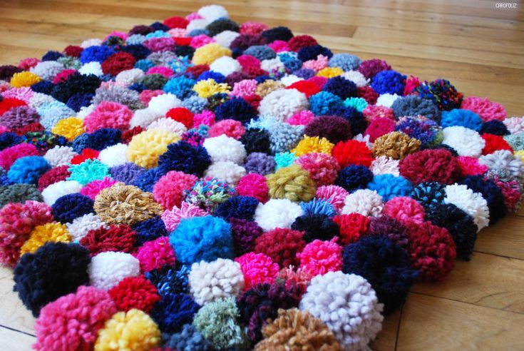 Создайте этот милый коврик из помпонов своими руками и не пожалеете! Он добавит вашему дому уюта.