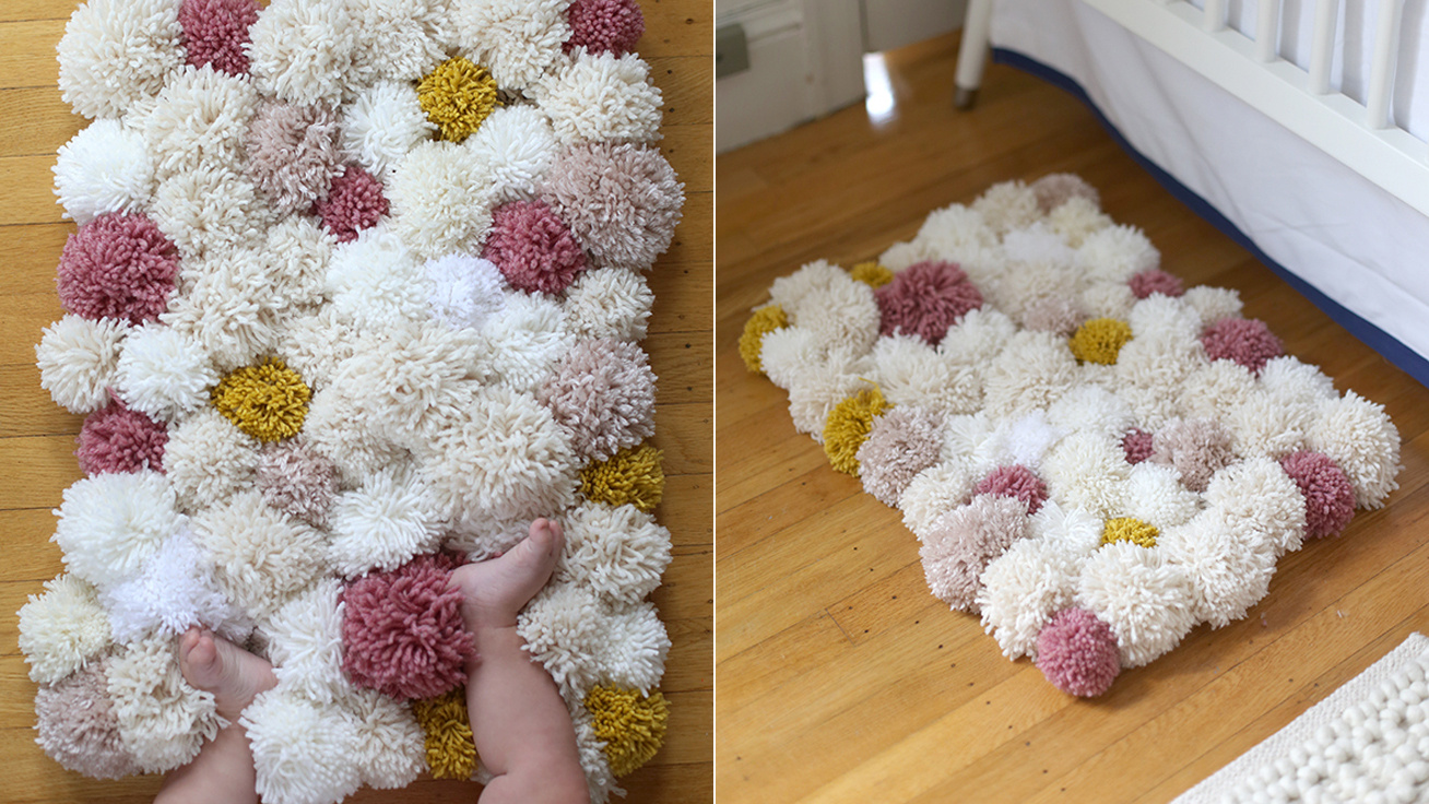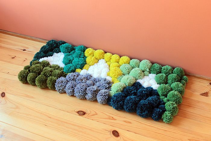 Перед вами прекрасный способ добавить цвета и текстуры в интерьер комнаты при помощи коврика из помпонов.