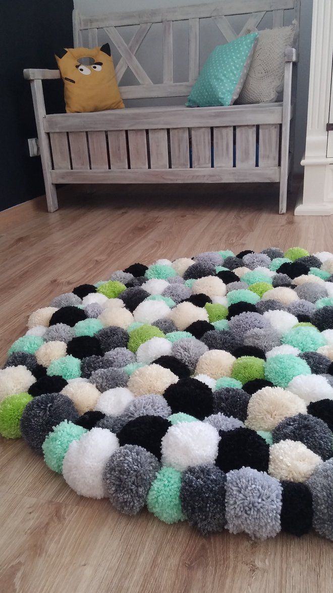 Помпоны — отличный способ добавить мягкий, пушистый акцент ко многим вещам. Почему бы не использовать всю эту мягкость под ногами? Сочетая несколько размеров и цветов, вы можете создать ковер с богатой текстурой, которая будет сочетаться с вашим декором.