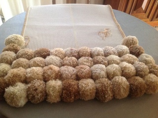 Заполните холст ковра помпонами, как задумано.Сделайте любые дополнительные помпоны, необходимые для заполнения пробелов, и прикрепите их по мере необходимости.