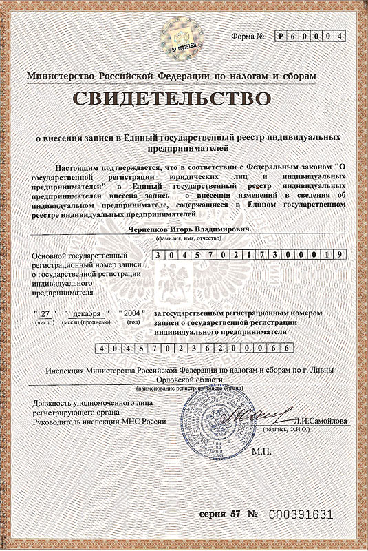 3. Заканчивается процедура выдачей вам пакета документов, удостоверяющих факт успешной государственной регистрации ИП (см. пакет документов далее)