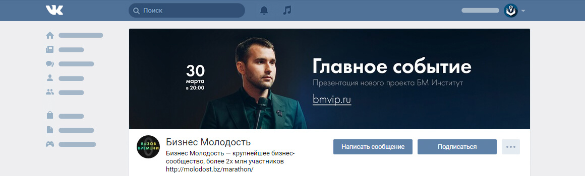 Обложка или шапка группы должна привлечь внимание пользователя.
