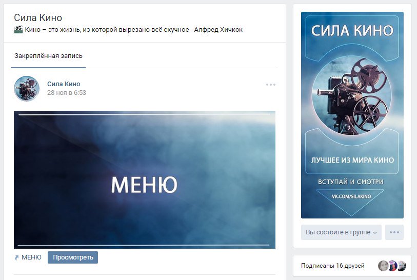 - Меню ссылок на разделы вашего сообщества. Создаете обложку, подключаете раздел и готово. Можно вести пользователей на раздел с товарами, отзывами, сообщениями и так далее.
