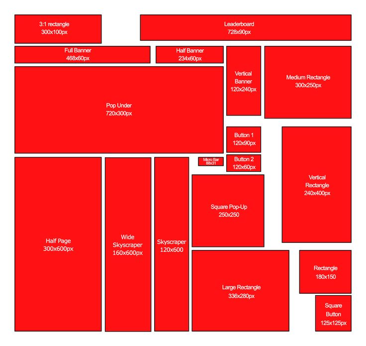 Ниже приведен список стандартных размеров, основанный на более популярных размерах. Кроме того, есть некоторые дополнительные параметры для других социальных сетей или мобильных устройств.