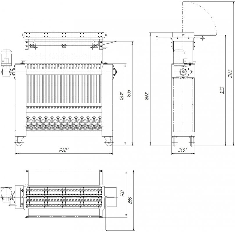 Каждый раз при погружении рамки на фитиль наносится еще один слой парафина. Эта машина имеет шесть вертикально подвижных рычагов. Они собраны на шестигранном колесе. На эти кронштейны подвешиваются рамки с скрученными фитилями. Эти рамки погружаются одна за другой, вращая колесо машины как в карусели. Для производства используется только одна парафиноплавильная установка.Дополнительное оборудование: