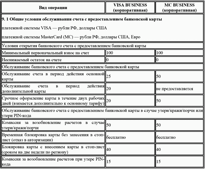 Тарифы по расчетно-кассовому обслуживанию в рублях с 17.