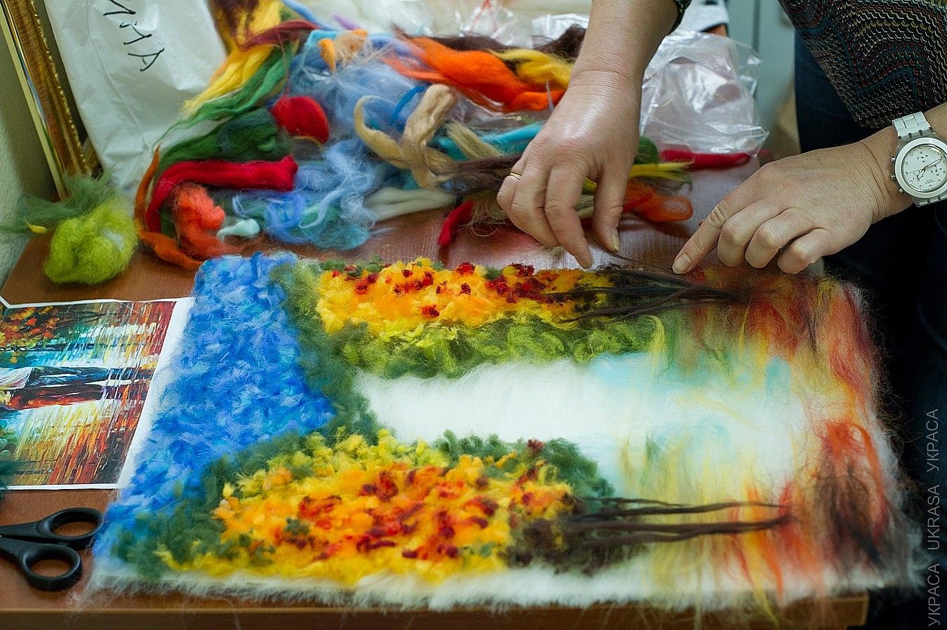 Особенности: сюжеты для шерстяной акварели может подсказать мастер или придумывают сами участники.
