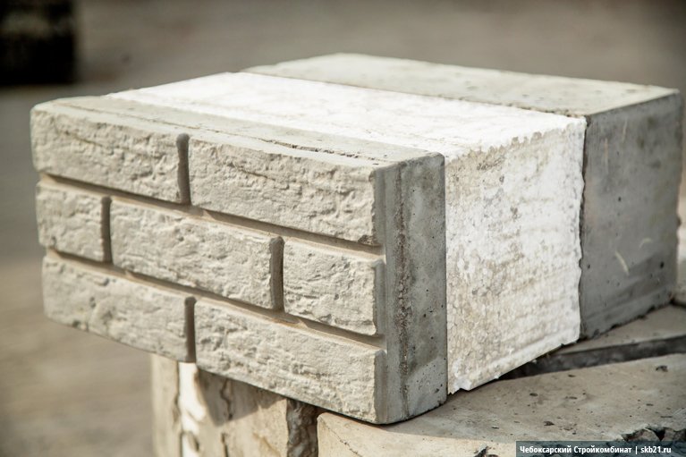 Несущая часть — керамзитобетон марки 200. Лицевая часть — высокопрочный гранитобетон