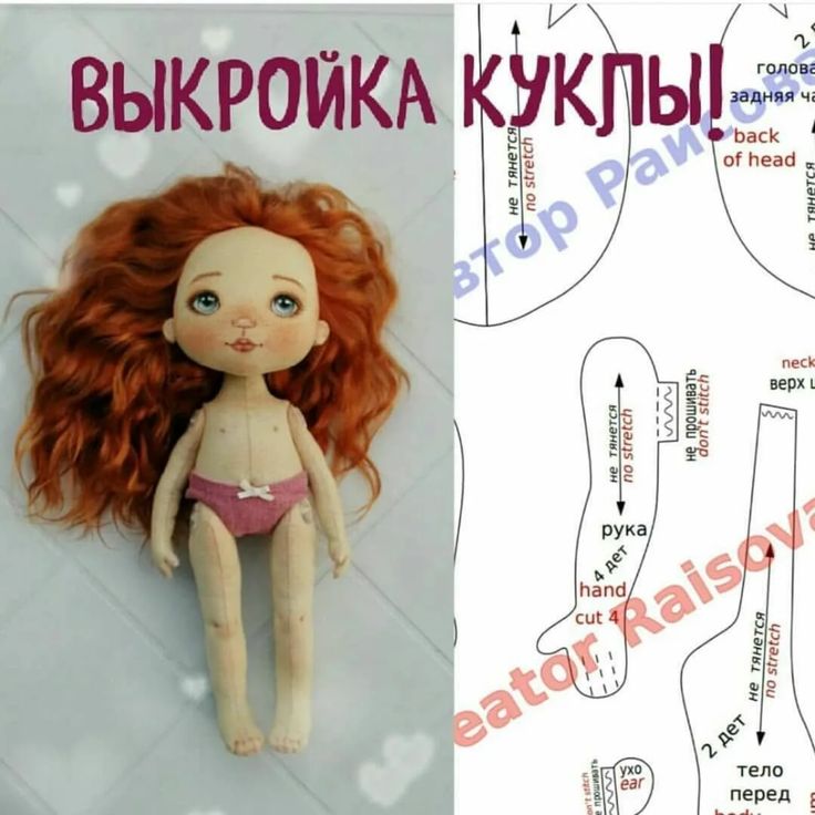 - Используя тянущийся трикотаж, вы получите куклу, которая станет крупнее выкройки — и выше, и толще. Поэтому выкройку перед пошивом нужно уменьшить.
