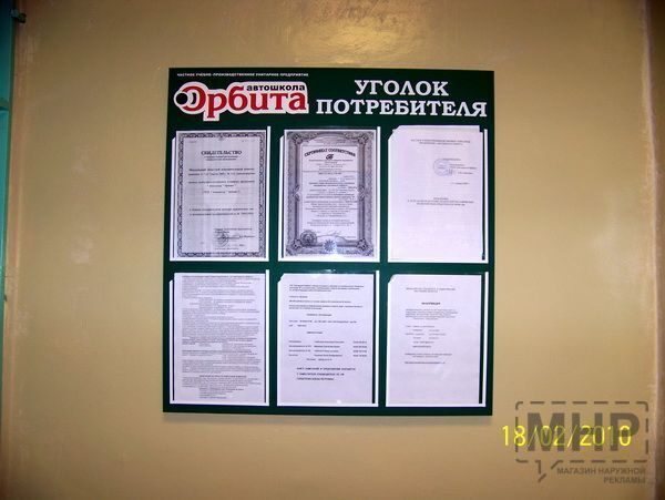 В законе нет конкретных требований, как оформлять уголок потребителя. Поэтому обычно продавцы и исполнители либо делают стенд, либо размещают на видном месте стойку или стол, где лежит папка с нужными документами в перекидных файлах.