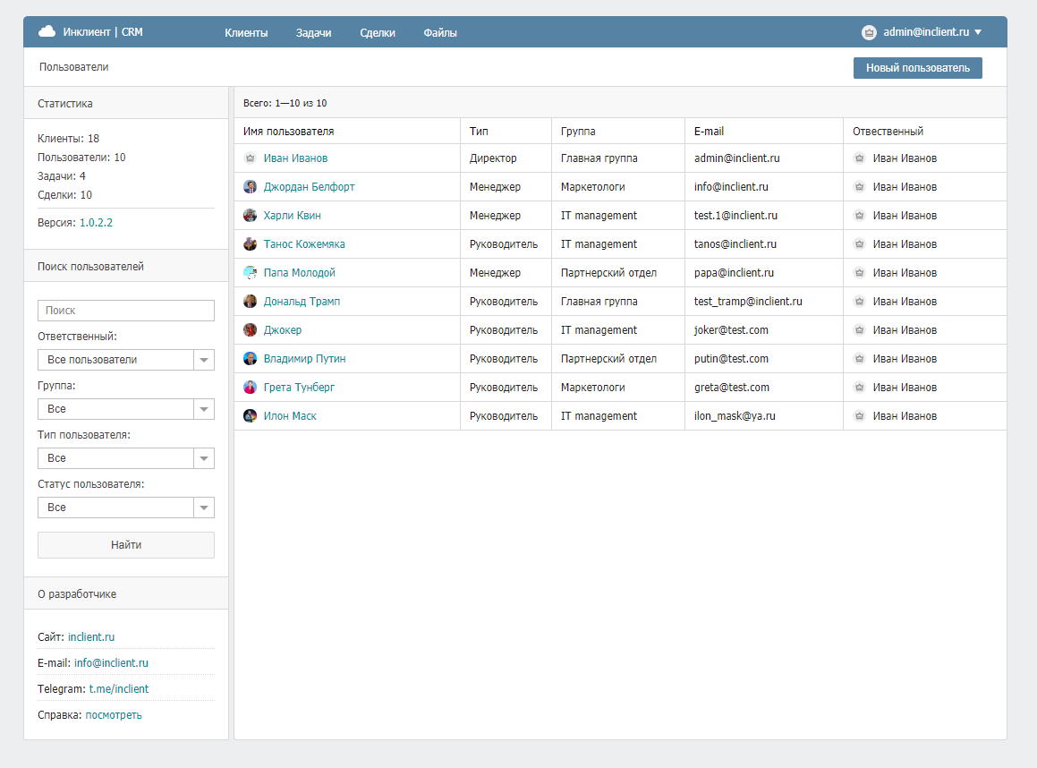 ✓ Возможность управлять отделом продаж: ставить задачи, распределять роли между операторами, проект-менеджерами, администраторами.