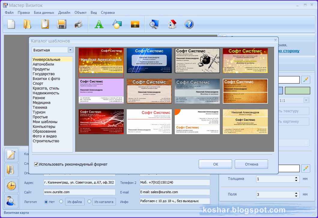 Программы для создания визиток на русском языке