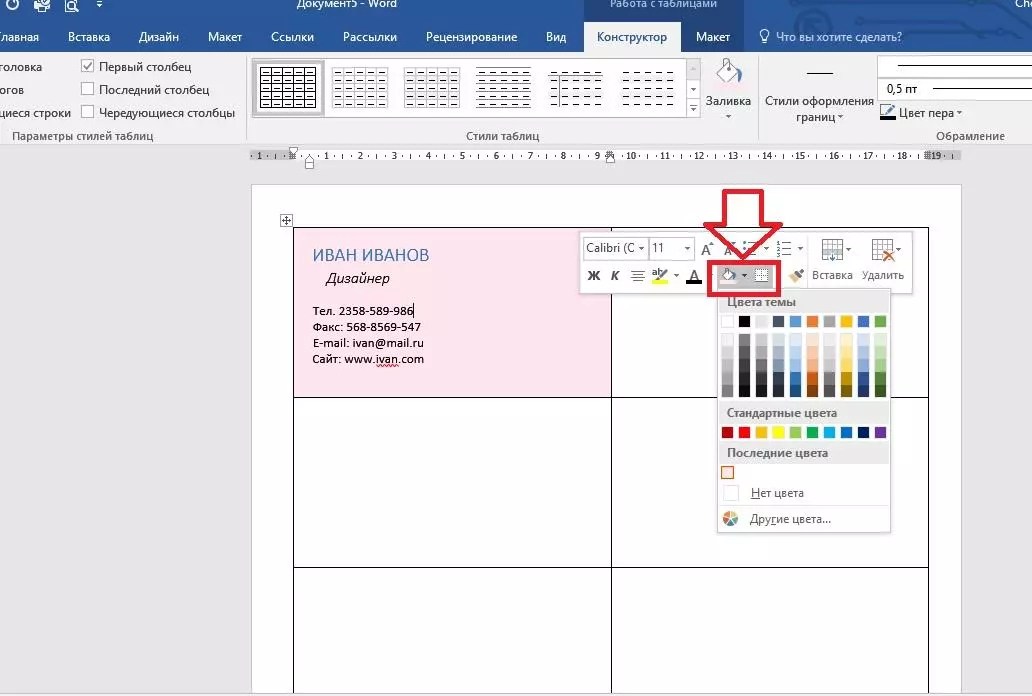 Создание визитки простейшим методом в Word