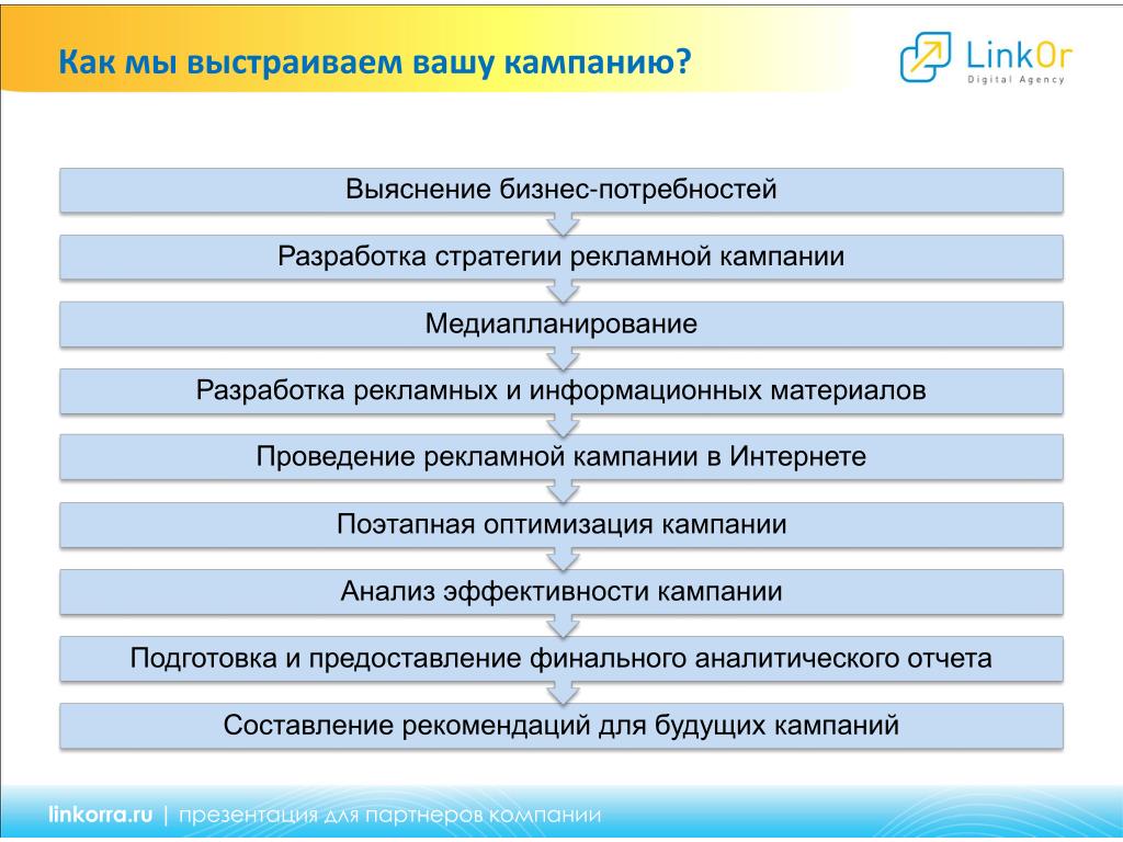- Корректировки. Ход и динамика кампании отслеживается ежедневно. Поэтому мы всегда готовы скорректировать её по желанию клиента или необходимости, продиктованной рынком.
