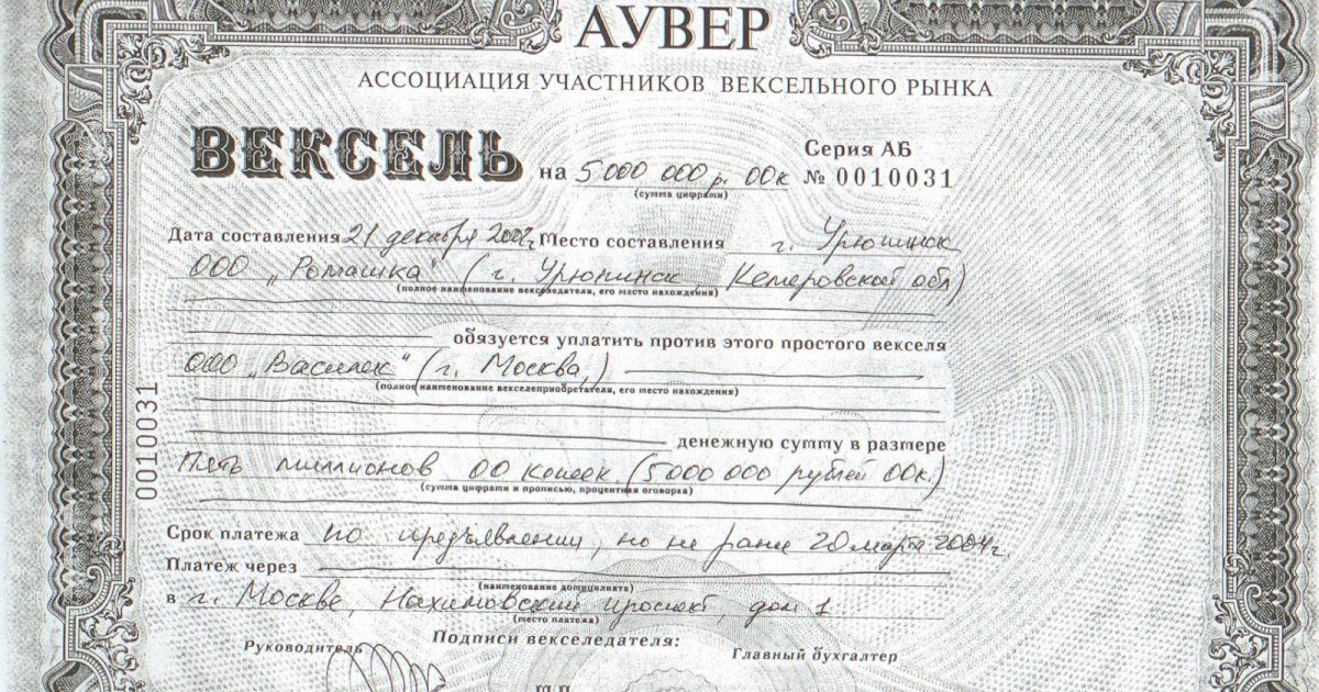Вексель — это формализованный документ, который гарантирует выполнение обещания выплаты определенной суммы в будущем. Вексель заполняется на гербовой бумаге и считается более надежным по сравнению с распиской. В то же время, с выдачей векселя связаны такие же риски невозврата долга, как и с другими долговыми инструментами.