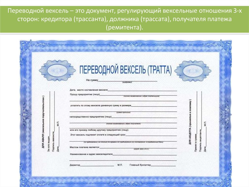 Важно отметить, что переводные векселя не могут приносить проценты.