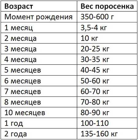 Только в этом случае вес поросят по месяцам, который мы приводим в таблице ниже, будет соответствовать приведенным цифрам. При выращивании гибридов результаты могут быть совсем другими.
