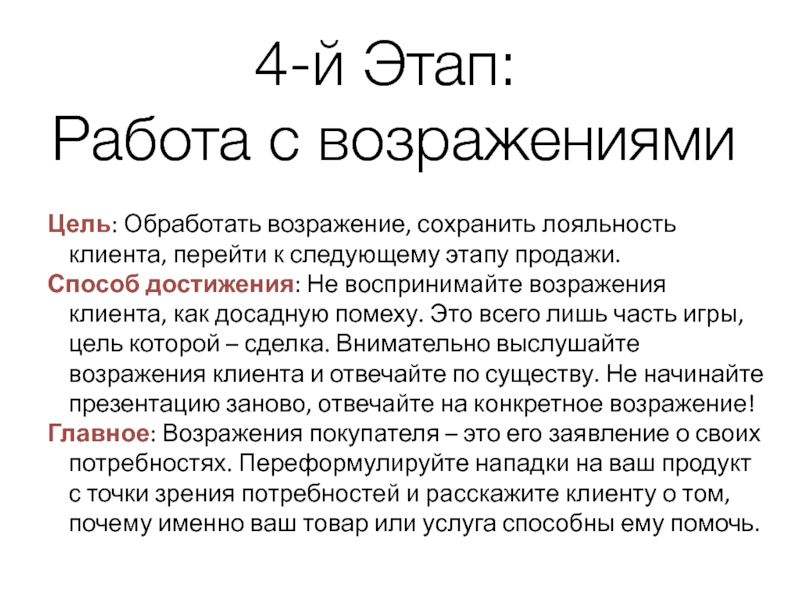 Четыре этапа обучения работе с возражениями