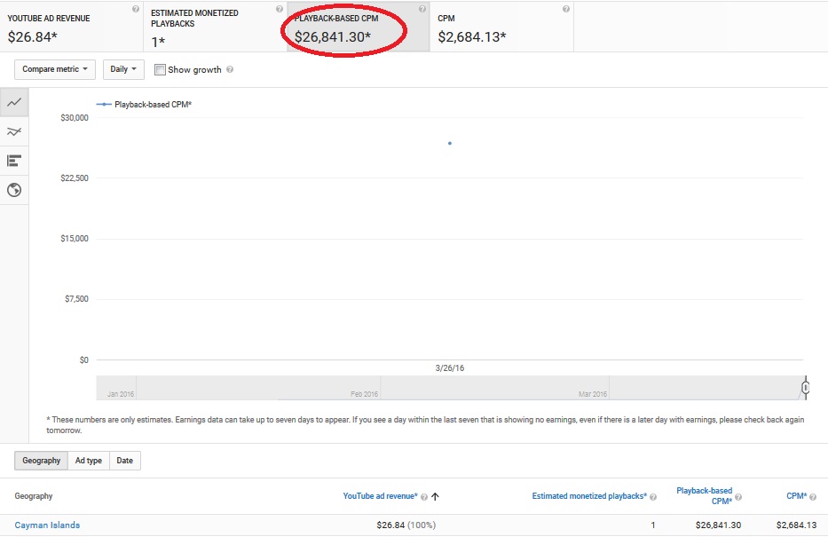 Второй фактор заключается в том, что у YouTube разные цены за тысячу показов для разных аудиторий. CPM означает стоимость за тысячу показов и представляет собой сумму, которую рекламодатель платит за каждую 1000 просмотров объявления. Эта разница в цене за тысячу показов зависит от региона, и просмотры рекламы в разных странах оплачиваются по-разному; страны с высокой ценой за тысячу показов включают Норвегию и Великобританию.