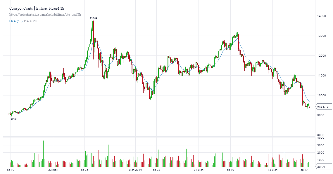 В июне и июле курс виртуальной валюты постепенно повысился, максимальный показатель составил 310 долларов за один биткоин.