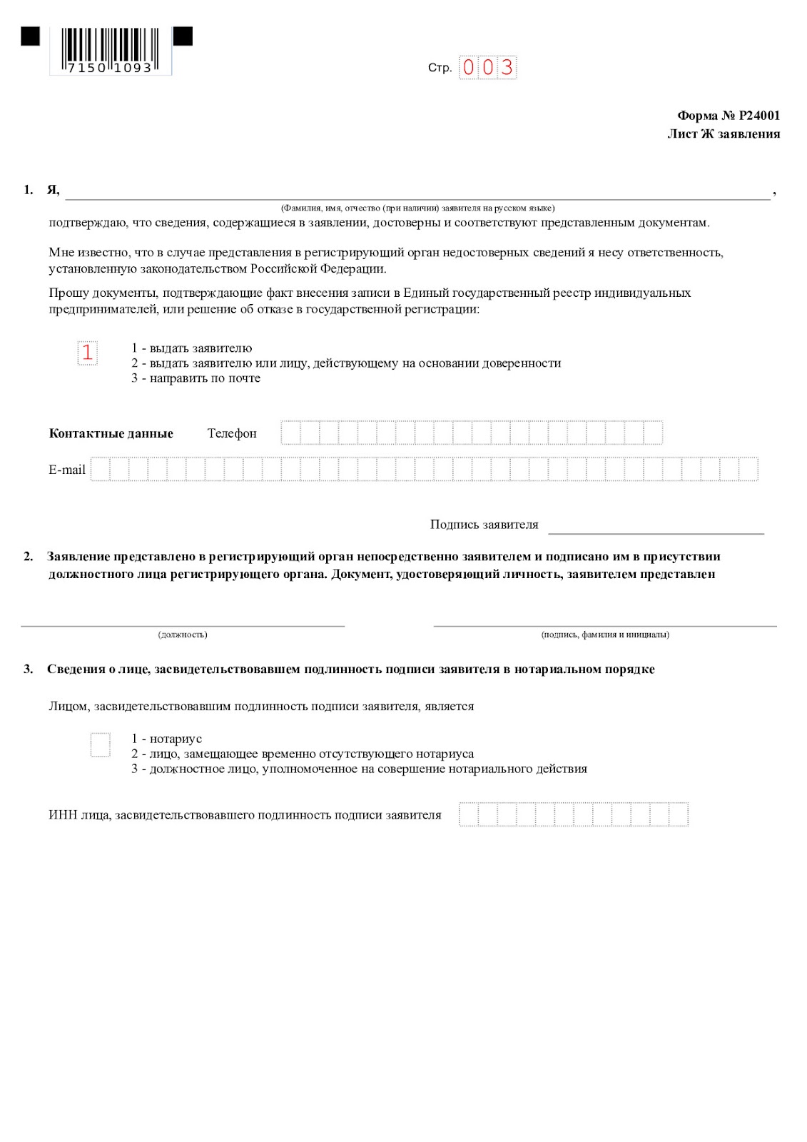 - Р24001 Заявление о внесении изменений в сведения об ИП, содержащиеся в ЕГРИП
